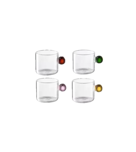 Xicara vidro Monet – apegador bolinha vidro 4 cores – capacidade 120ml – cx 100